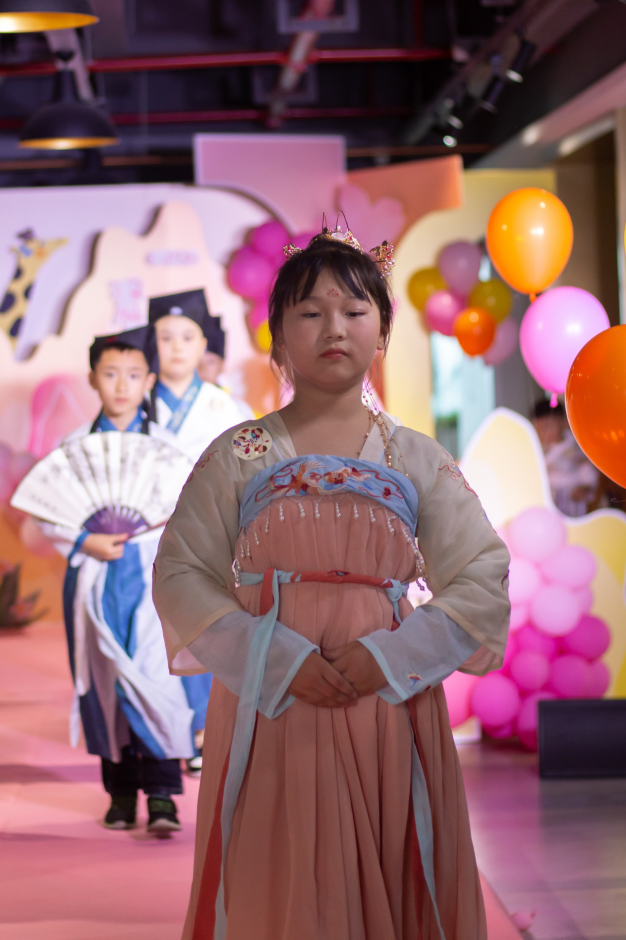 The whole campaign was composed of a T-show, entertaining games, and photo-shooting activities, etc. Dressed in gorgeous Han costumes, the children were graceful and energetic, showing a beautiful picture of the prosperous Han and Tang Dynasties. The children were full of spirits and self-confidence, fully demonstrating the unique style of the Huasheng family.