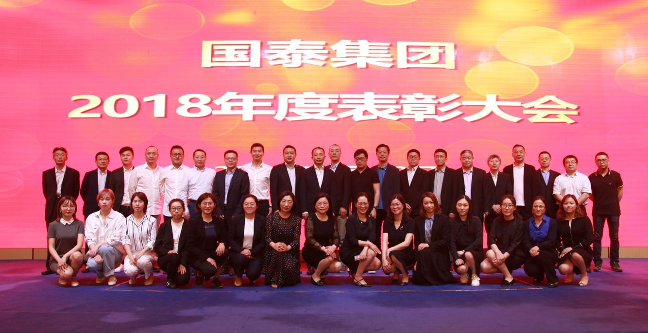 Jiangsu Guotai International Group Co. Ltd. held its 2018 annual commendation conference at 9:00 a.m. on May 30to praise advanced branchesand teams in 2018 and to plan and deploy goals and tasks for2019. Directors supervisors senior exe