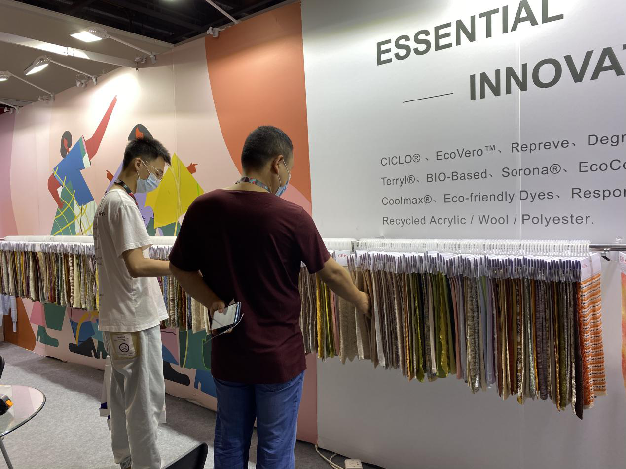 展会上,国泰华盛展出了2022/2023秋冬最新产品,主打高端羊绒羊毛系列、抗菌等功能性系列以及再生环保系列,多种新色卡也一并亮相展会现场。