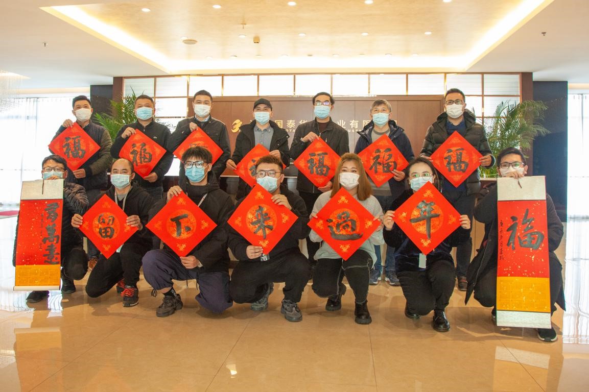 1月19日,张家港市总工会副主席高翔携书法家代表陈宇、沈枫锋到访国泰华盛慰问外地职工。国泰集团联席总裁、工会联合会主席陈晓东,国泰集团人力资源部总经理郭盛虎,国泰华盛董事长金志江陪同并一起送上春联及新春祝福,同时倡导外地职工留港过年。 在随后举行的倡导