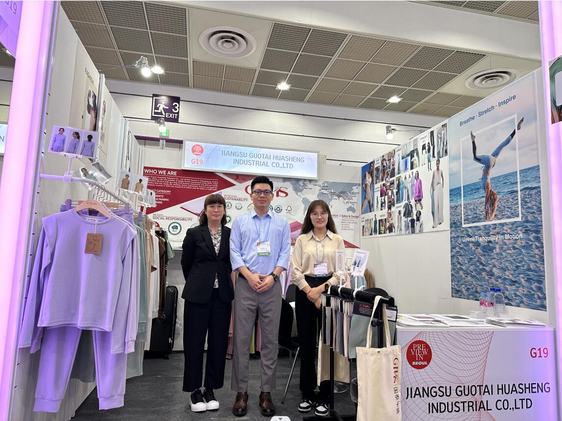 为加速公司多元化市场战略,8月23日至25日,国泰华盛盛天事业部盛泰分公司奔赴韩国,参加了在首尔COEX中心举办的韩国首尔国际纺织服装展(preview in Seoul ,2023)。 此次展会,国泰华盛重点展示了SS24轻薄系列女装服饰和面料,希望借此机会,拓宽业务渠道,进军韩国市场。
