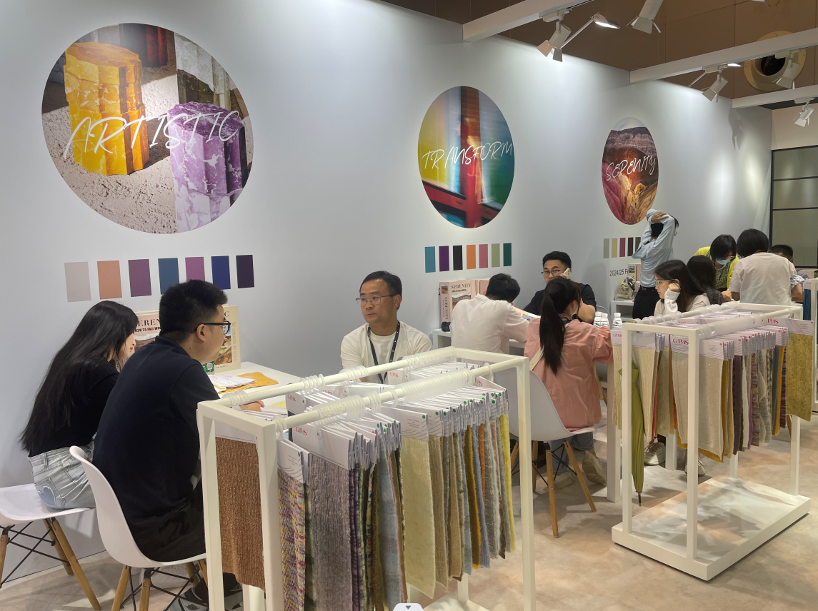 8月29-31日,国泰华盛参展团队携2024FW秋冬等品种参加上海纱线展,选用环保原料设计出了磨毛纱、拉毛纱、棉纺纱、粗纺纱、喷毛纱等各类纱线,现场吸引了大量客户的洽谈咨询。 本次参展不仅巩固了已有的合作关系,还发掘了一批潜在客户,为进一步开拓市场奠定了坚实基础