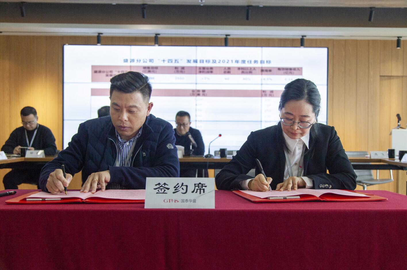 At the conference, Chairman Jin Zhijiang explained the "14th Five-Year Plan" and the development goals for 2021 in detail, and clarified the guiding ideology and overall work requirements. Chairman Jin Zhijiang and Shengtian Business Division signed the "14th Five-Year" Development Goal Responsibility Letter and the 2021 Economic Responsibility Letter, and General Manager Zhu Ronghua signed the "14th Five-Year" Development Goal Responsibility Letter and the 2021 Economic Responsibility Letter with each branch.